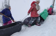 Каникулда без тик ятмыйбыз. Чана, чаңгы шуабыз. Күңелле ял итәбез.