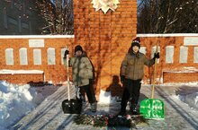 Безнең укучыларыбыз һәрдаим һәйкәл янын карап, чистартып торалар. Менә каникул чорында да бу эш дәвам ителә. Карлар явып тора.