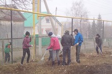 26 апрель көнне мәктәбебез коллективы мәктәп тирәсен чистарту максатыннан өмәгә чыкты. Һәр класска җыештыру өчен аерым участоклар бүленеп бирелде. Көн салкын һәм күңелсез булуга карамастан укучыларыбыз бик тырышып эшләделәр. Үзләренә бирелгән территорияне һәммәсе ялт иттереп, чистартып куйдылар.