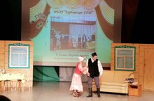 "Театр ел"ын тәмамлау кичәсендә Бөрбаш урта мәктәбе коллективы "Беренче театр" спектакленнән өзек күрсәтте.