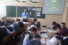Тормыш иминлеге укытучысы Рим Фәргатович 8 нче сыйныфта "Беренче ярдәм күрсәтү" темасына ачык дәрес күрсәтте.