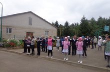 Көннәр кояшлы матур тора. Укучылар узган уку елындагы традицияне дәвам итеп, билгеләнгән вакытта саф һавага чыгалар, төрле физик күнегүләр ясап сәламәтлекләрен ныгыталар.