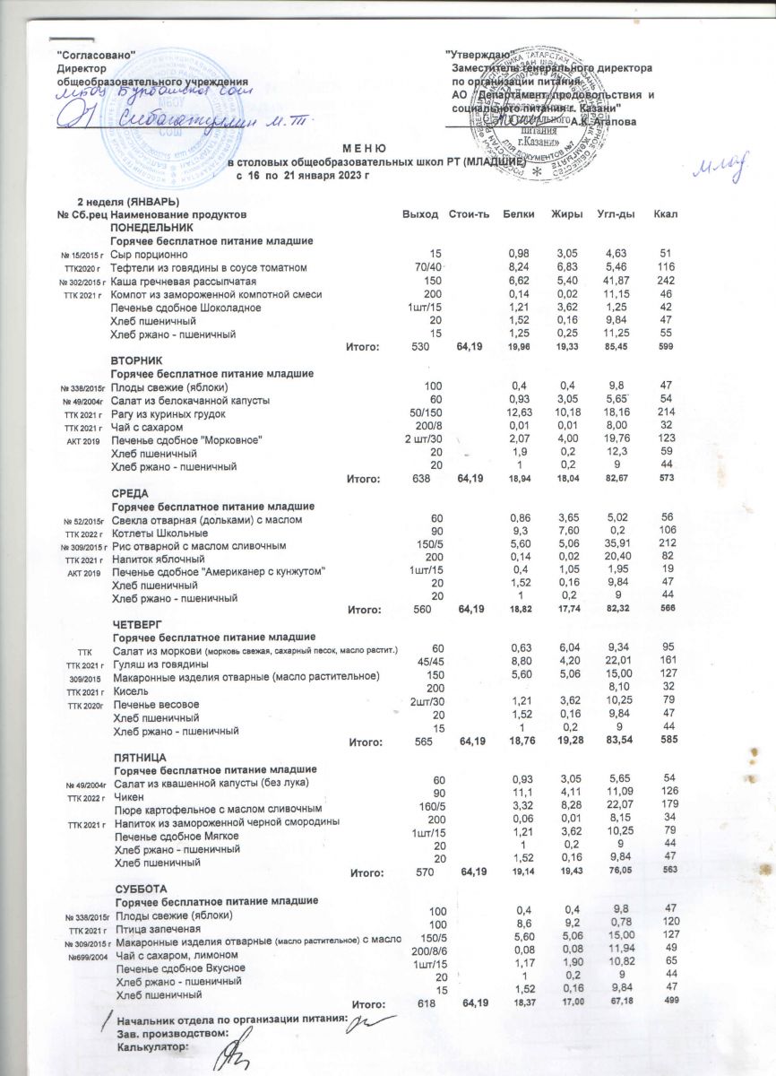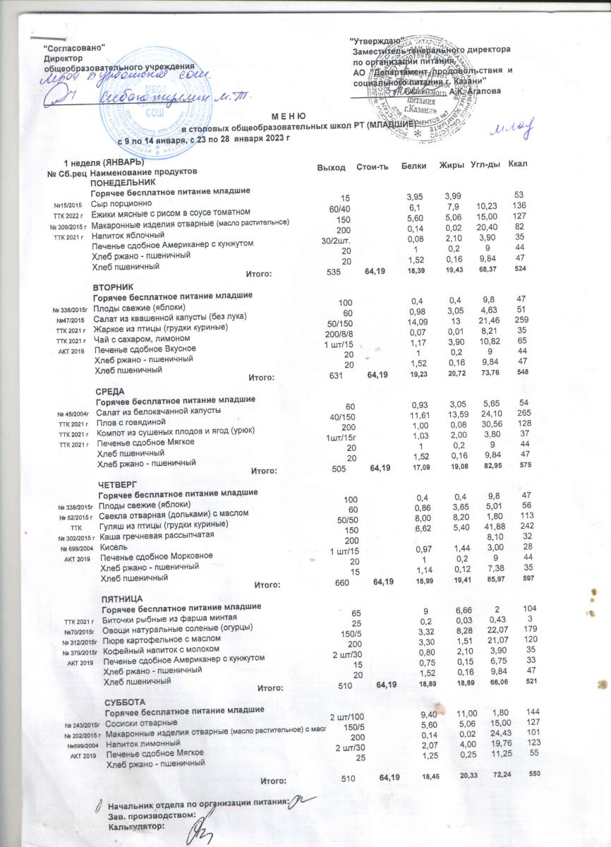 Примерное двенадцатидневное меню (сезон зимний). Для организации горячего питания обучающихся начальных классов РТ.