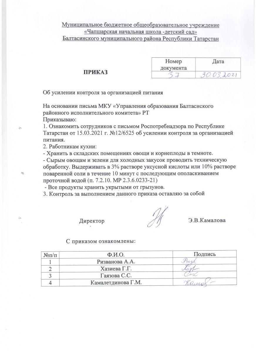 Приказ об усилении контроля за организацией питания