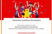 Участвовали на "Уроке цифры" на тему "Быстрая разработка приложений" и получили сертификаты / Укучылар "Кушымталарны тиз эшләү" темасына "Саннар дәресе"ндә катнаштылар һәм сертификатлар алдылар