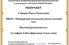 Обучающийся 1 класса Сабиров Раиль участвует в республиканском конкурсе безопасности в сети «Галактика информационной безопасности». Конкурс проводится по направлению информационная безопасность в рамках противодействия идеология экстремизма и терроризма «Галактика информационной безопасности».