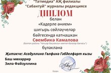 1 сыйныф укучылары Камалова Сөембикә һəм Cəлəхова Гɵлчəчəк "Сабантуй" журналы үткәргән «Кадерле әнием» шигырь сөйләүчеләр бәйгесендә катнашып, дипломнар белән бүләкләнделәр.