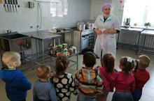 Пешекче һөнәре белән тирәнрәк таныштыру максатыннан бакча балалары ашханәдә кунакта булдылар. Пешекче Миләүшә апалары аларга аш пешерү серләрен сөйләде.