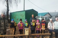 Табигатьне саклау акциясе кысаларында укучылар һәм балалар бакчасы балалары, "Балтач" тыюлыгы инспекторлары белән берлектә, кошлар өчен оялар элделәр. /В рамках природоохранной акции "Скворечник" ученики и воспитанники,совместно с инспекторами заказника "Балтасинский" развесели домики для птиц.