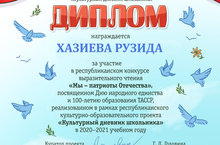 Без Халыклар бердәмлеге көненә һәм ТАССР төзелүнең 100 еллыгына багышланган «Без – Ватан патриотлары» дип исемләнгән республика сәнгатьле уку конкурсында катнаштык./Мы участвовали в республиканском конкурсе выразительного чтения «Мы – патриоты Отечества», посвящённом Дню народного единства и 100-летию образования ТАССР.