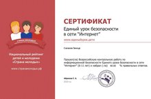 прошли тест и узнали насколько они уверенные пользователи сети - 20 вопросов в тесте охватывают основные темы информационной безопасности.Тест был ориентирован на участников в возрасте от 6 до 11 лет. По окончанию теста каждый его участник получил электронный сертификат о прохождении теста и участии в Едином уроке. -