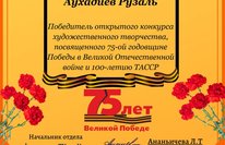 ГБУ "Безопасность дорожного движения" награждает Аухадиева Рузаля, победителя открытого конкурса художественного творчества, посвященной 75-ой годовщине Победы в Великой Отечественой войне и 100-летию ТАССР