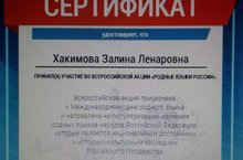 Более 8 тысяч человек из 78 регионов России приняли участие в акции "Родные языки народов России", приуроченной к Международному дню родного языка. И наши школьники получили именные сертификаты / Бөтенрәсәйкүләм үткәрелгән "Телләр турында"гы акциядә катнашып, безнең укучыларыбыз исемле сертификатлар алдылар