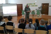 Инспекторами ГПКЗ "Балтасинский" был проведен экологический урок и занимателҗные игры... По завершению экологического урока специалисты заказника подарили детям книги под названием «Места заповедные» / Балтач дәүләт тыюлыгы инспекторлары укучылар һәм бакча балалары белән белән әңгәмә һәм уеннар уздырдылар. Татарстан Республикасы урман хуҗалыгы министрлыгы ярдәме белән бастырылган китаплар бүләк иттеләр.