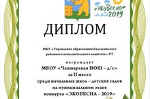 «Экояз – 2019» акциясендә мәктәп-бакчабыз 2нче призлы урынны алды./ Мы заняли 2 место на муниципальном этапе конкурса «Эковесна – 2019»