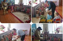 Подводя итоги месячника безопасности, в гости к младшей группе пришли сотрудник полиции и сотрудник Балтасинского отделения пожарной безопасности. Они ознакомили детей с правилами безопасности, вкратце рассказали о своей работе, раздали детям подарки.