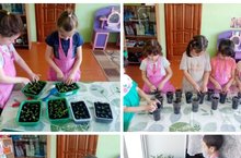 Эковесна акциясе кысаларында зурлар төркеме балалары белән үсентеләрне һәм чәчәкләрне күчереп утыртылды. Максат: Балаларда барлык тереклек ияләренә карата шәфкатьлелек, табигатькә сак караш тәрбияләү; туфрак турындагы күзаллауларын киңәйтү, экологик бәйләнешләр белән таныштыруны дәвам итү.