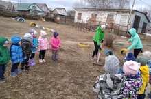 "Эковесна" конкурсы кысаларында кечкенәләр төркеме балалары уен мәйданчыгын җыештыруда катнаштылар.