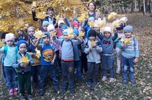 Дети старшей группы отправились в путешествие в осеннюю природу. Восхищаясь красотой осенней природы, играли с разноцветными листьями, отдыхали.