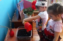 Кече яшьтәгеләрнең II төркеме балалары тәрбияче апаларына гөлләр тәрбияләргә булыша, утырткан чәчәк орлыкларына су сибә. Дети II группы раннего возраста помогают воспитателям ухаживать за комнатными растениями. 11.04.2018