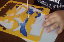Транспортнын торен ойрэну максатыннан, трафарет ярдэмендэ краска белэн альбом битенэ тошереп шогыльлэну.