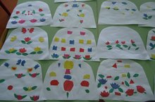 Мәктәпкә хәзерлек төркеме балалары Фәридә Шакированың "Түбәтәй"шигырен укыганнан соң татар нәкышлары кулланып, кисеп ябаштыру ысулы белән түбәтәйләр бизәделәр.