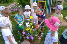 Чәчкәләрне без яратабыз, көн дә сулар сибәбез.