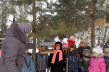 Әти-әниләр ясап килгән җимлекләрне уен мәйданчыгындагы агачларга элеп, балалар белән кышлаучы кошларны күзәтәбез.
