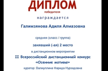"Көзге мотив II Бөтен Рәсәй дистацион бәйге"сендә катнашып,призлы урыннарга лаек булган балаларыбыз Галимзянова Адилә, Набиева Алия, Шамсутдинов Кәримне, аларның әти-әниләрен, кураторлары Валиуллина Фәридә Нурзадовнаны җиңү яулаулары белән котлыйбыз.
