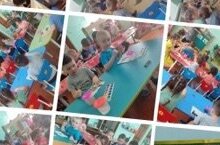 Бүген уртанчылар төркеме балалары кисеп-ябыштыру шогылендә бирелгән кәгазьләрдән( турыпочмак,квадраттан) кайчы белән түгәрәк,овал кисү күнекмәләрен ныгыттылар.