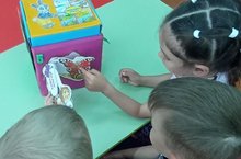 Уртанчылар торкеме балалары экология буенча белемнэрен ойрэтуче куб ярдэмендэ ныгыталар.