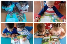 Кечкенәләр төркеме балалары рус халык әкиятләре китапларын карарга һәм тыңларга яраталар.