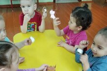 Бүген зурлар төркеме балалары язгы матурлыкның тагын берсе белән таныштылар. Сирень чәчәген күзәтеп, традицион булмаган алым белән сирень чәчәге ясадылар. -