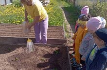 Кечкенәләр төркеме балалары белән чәчәк үсентеләрен күзәтү. Үсентеләр яхшы үссен өчен аларга җылылык, яктылык һәм су кирәклеген аңлату.