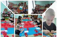 Бүген без балалар белән әниләргә бүләккә чәчәкләр бәйләме кисеп ябыштырдык.