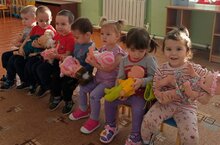 Кече яшьтәгеләрнен икенче төркеме балалары курчакларга бишек жырлары жырладылар. -
