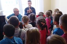 Бүген «Балтач сәнгать мәктәбе» укучылары бездә кунакта булды. Сәнгать мәктәбендә белем алучы кызлар һәм малайлар төрле уен коралларында уйнаса, аларга белем бирүче мөгаллимнәр кызыклы уеннар белән балаларның күңелен күрде. Музыка җитәкчесе: Шакирова Г.М.