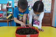 Бүген мәктәпкә әзерлек төркеме балалары белән "Ни өчен орлыкларны, үсемлекләрне балчыкка утырталар?"темасына танып белү эшчәнлеге үтте. Балалар белән тәҗрибәләр үткәрелде. Тәрбиячеләр:Дәминова Я.М.,Һәдиева Ч.М.