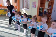 Кечкенәләр төркеме балалары физик тәрбия бирү шөгылендә./ Дети младшей группы на занятии по физкультуре. 18.03.2024