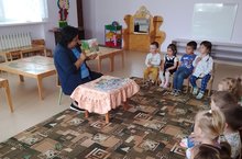 6 июнь - рус теле көне уңаеннан II кече яшьтәгеләр төркеме тәрбиячесе балаларны рус халык әкиятләре белән таныштырды.