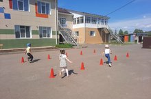 Дети младшей группы учатся играть в новые игры.