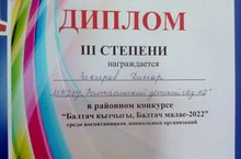 Мәктәпкә әзерлек төркеменнән Закиров Динар һәм Юнусова Рәзинә "Балтач кызчыгы, Балтач малае-2022" бәйгесендә 3 дәрәҗәдәге дипломга лаек булдылар.