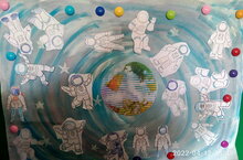 Уртанчылар төркеме балалары "Галәм киңлекләрендә" плакатын ясадылар.