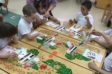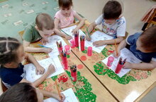 II нче кече яшьтәгеләр төркеме балалары "оча,оча яфраклар" темасына күмәк рәсем ясадылар.