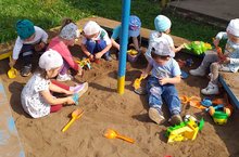Балалар бакчасының иң кечкенә балалары комлыкта уйнарга яраталар.
