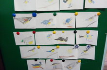 Дети старшей группы в рамках недели "Зимующие птицы" рисовали синицу.