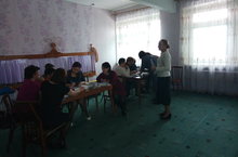 Икенче кеше яшьтәгеләр төркеме балалары "Без яулыклар юабыз" җырын ойрәнәләр.