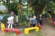 Зурлар төркеме уен мәйданчыгының бер почмагына апалар кечкенә тау ясадылар һәм зәвыклы итеп бизәп чәчәкләр утырттылар.