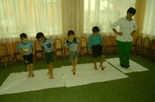 В детском саду ведутся занятия по профилактике плоскостопия и формированию правильной осанки. Занятия проводятся 2 раза в неделю после дневного сна.