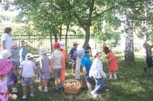 Безнең яшел бакчабызда мулдан булды уңышлар: помидорлар, кыярлар, алсу битле алмалар. Эшлийбез дә, ашыйбыз да, карлыгачтай тырыш та без эшчән, уңган балалар! Алсу алмалар пирогы пешерәләр апалар. Тәмле компот, кесәл ясап, таза, матур булсыннар дип, кайгырталар бит алар!
